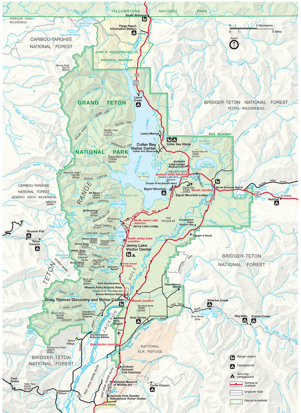 Map of the ParkShown to the right is a map of Grand Teton National Park, courtesy of the National Park Service. click the image to enlarge |